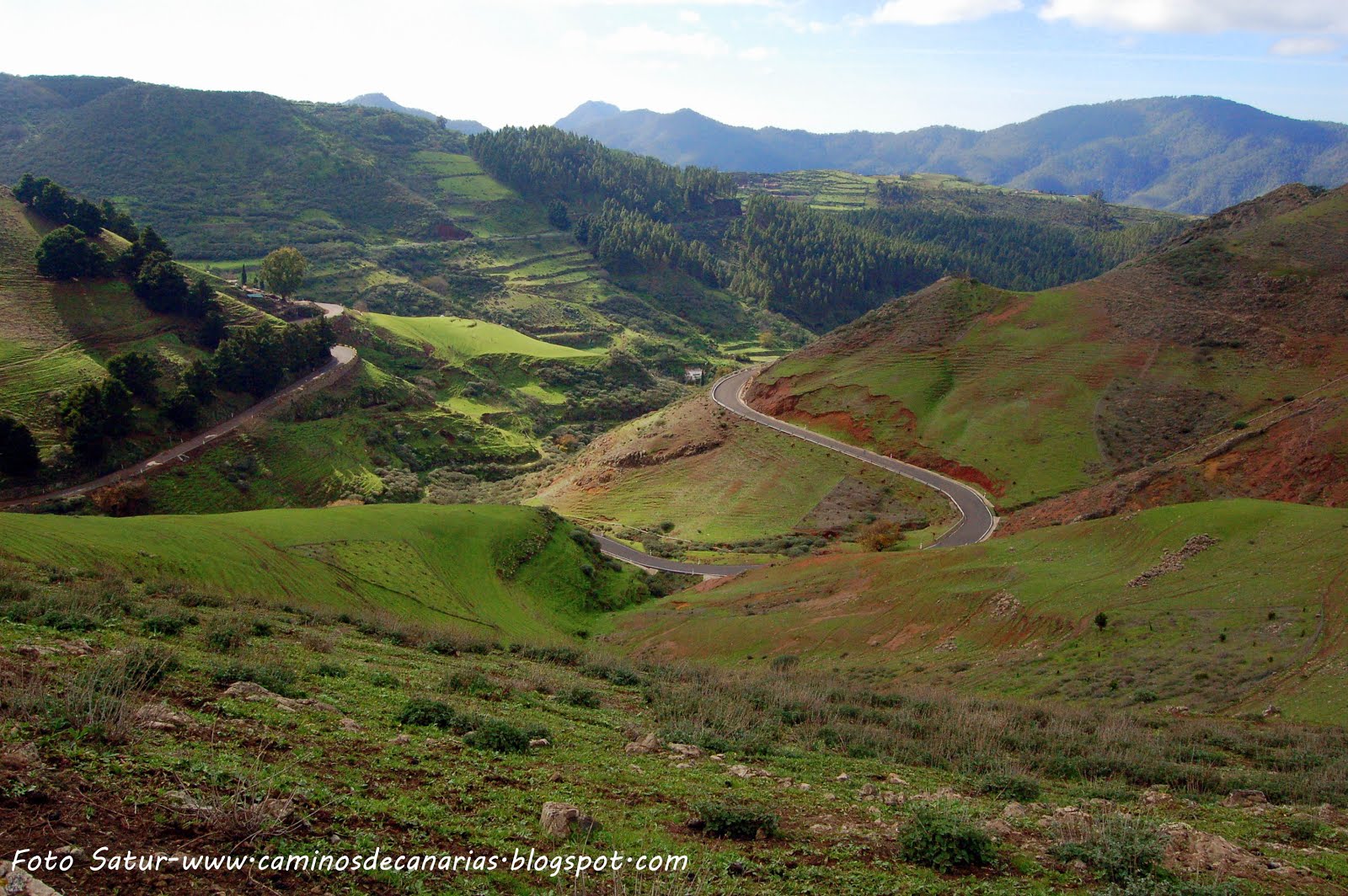 El camino lo iniciamos junto a la Caldera de los Pinos de Gáldar, tomamos la carretera en dirección a Artenara hasta localizar el camino que baja por la derecha.