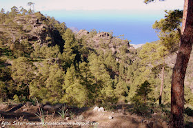 Dejando la carretera a nuestra derecha entramos en el pinar por una camino bien marcado que irá alternando pequeñas subidas con llanos hasta llegar a la Degollada de Las Lajas.