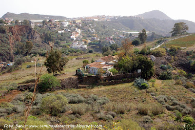 Luego vemos una bonita Casa Canaria, las casas de Valsequillo y el Barranco de San Miguel, llegados a un cruce obviamos la pista que sube y continuamos bajando.