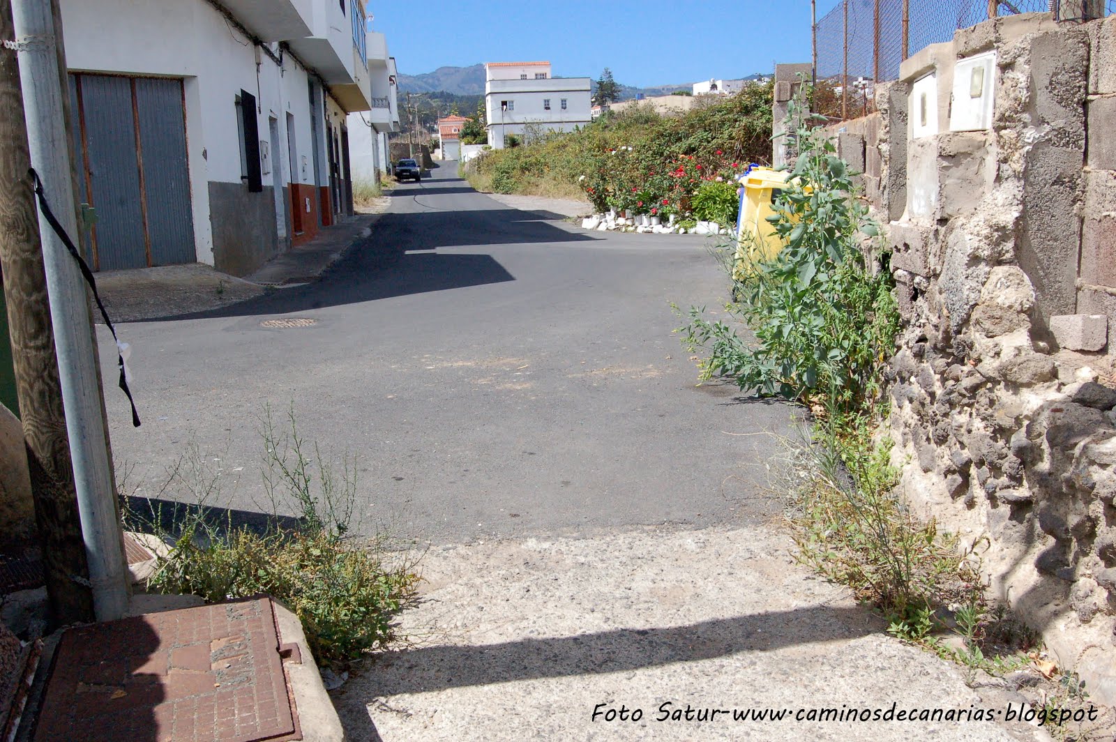 Bajamos a la izquierda hasta la carretera general junto a paso de peatones, cruzamos y caminamos unos metros a la derecha, parada de guaguas, hasta entrada a la izquierda.