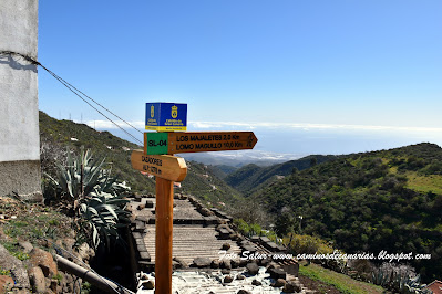 Al llegar al poste, giramos a la izquierda para continuar por camino que sube, señalizado con pequeño poste.