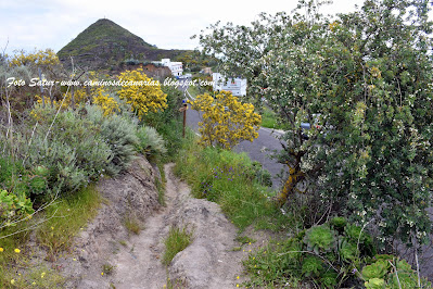 Si tomáramos un camino equivocado, nos daríamos cuenta ya que como decíamos anteriormente, por la izquierda bajamos al barranco, sin salida, y por la derecha salimos a la carretera general. Pasamos junto a una pared de piedras donde giramos a la derecha para dirigirnos a las casas que tenemos a la izquierda, el camino nos lleva a un cruce donde giramos a la izquierda para pasar entre las casas.